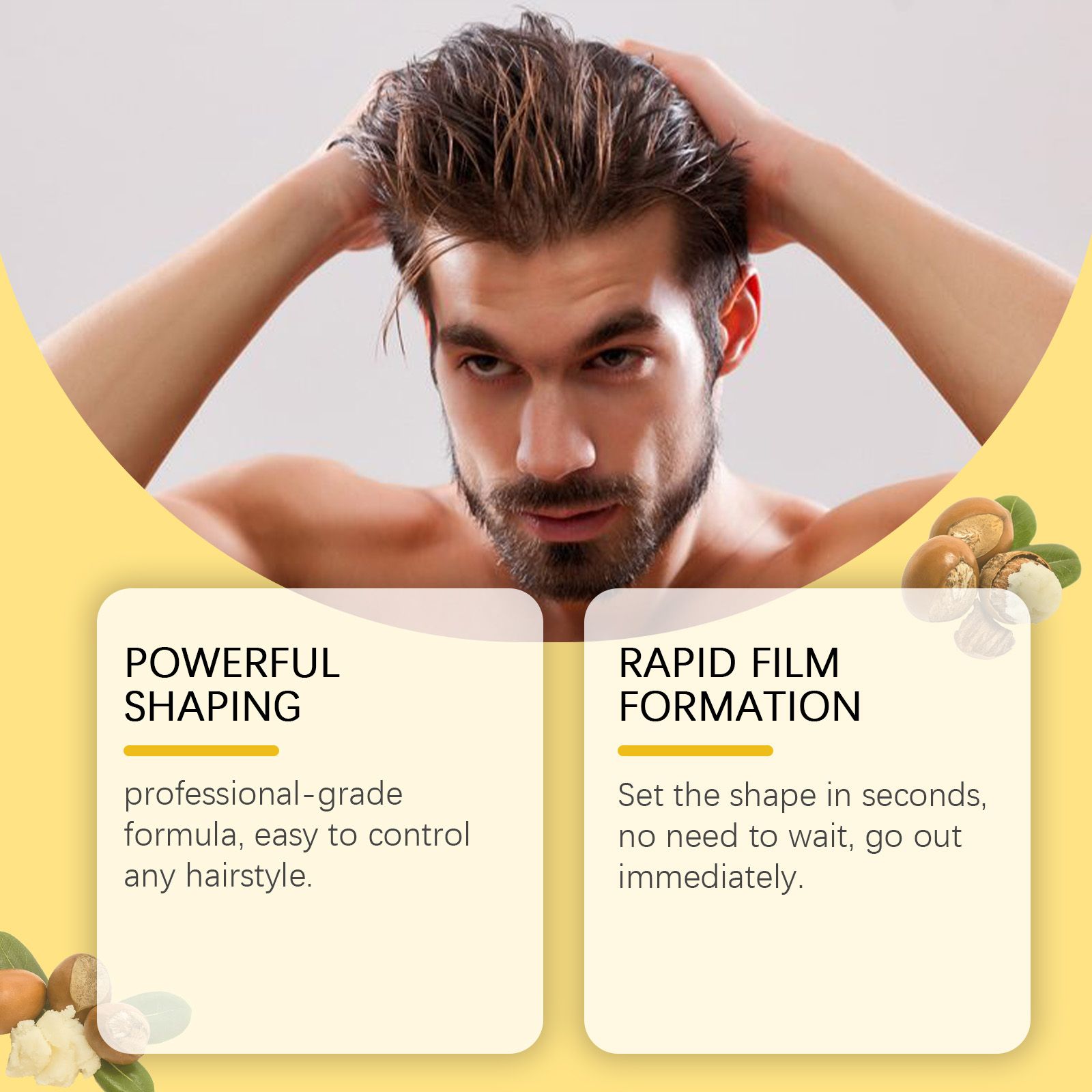 Our hair gel contains glycerin, beeswax and Jojoba seed oil. It can form a protective barrier and the durability of the hairstyle. Deeply nourish and regulate scalp oil balance; Moisturize and lock in moisture, hair breakage and thy growth. The way to use it is simple: 1. Clean your hair, then blow dry or blow dry until 80% dry. 2. Take proper amount of the product, add a little water to melt it, and evenly rub it in the hair. 3. Run your hands through your hair to create the style you want. Stay fresh throughout the day and stay away from greasy worries.