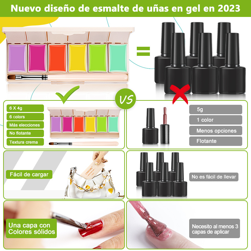 2.Solid Gel Polish Palette 6 in 1 Cream Soak Off Semi Permanent UV LED Lamp Paint Nail Gel Palette Of Hybrid Varnishes