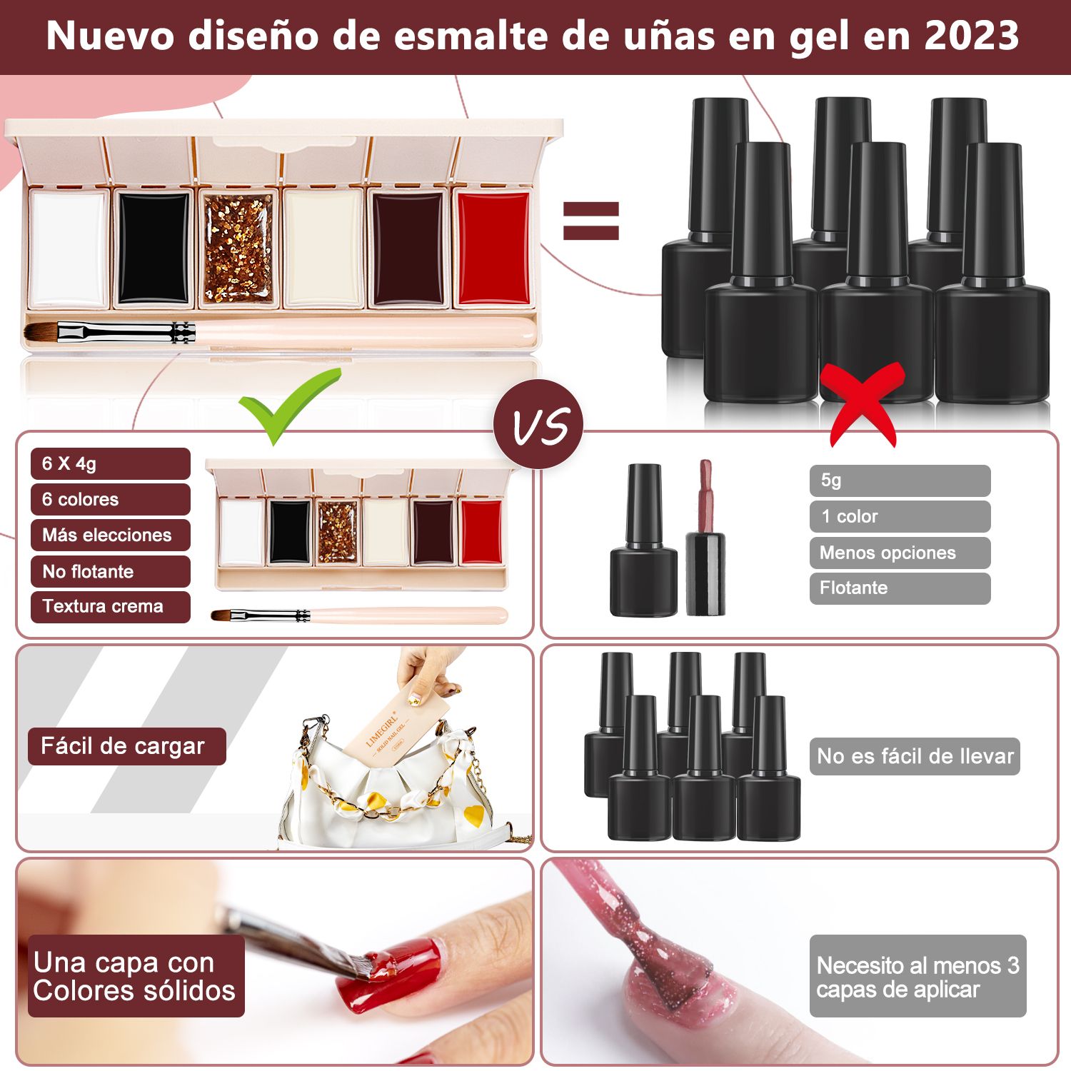 2.Solid Gel Polish Palette 6 in 1 Cream Soak Off Semi Permanent UV LED Lamp Paint Nail Gel Palette Of Hybrid Varnishes